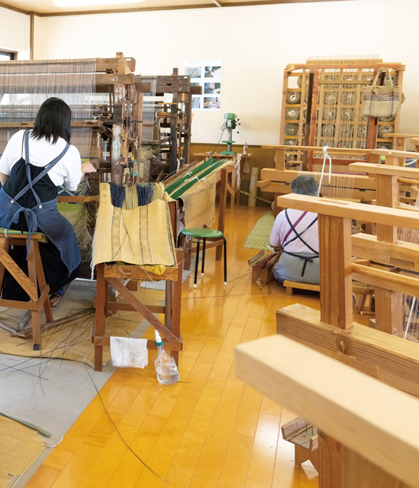 織機はもう本当に息も絶え 絶えに動いてる。前任の安原 さんがスタートした頃には、 綺麗なのがまだ織れたんで すって。それが、今ではなかな か難しい。ここの織機も、もう 120年以上は使われてるの かなぁ。メンテナンスが大変で、 あちこち釘打ったりしながら 使ってるから、いずれは動かな 言うて帰っていったんです。 教えるほうもみんなが喜んで、 そういうのが本当に嬉しい。 古い織機もなんとか綺麗に 織れる状態を保っていけて、 楽しく続けていけるような 状態にできたらいいなと。 体験したり、古い織機を見た りして花ごさを知ってもらい、 次の世代の人にも繋がって いけたら、それが一番いい。  結局、私がやりたいんです よ。家でも織ることを考えて るの。お前何しとるんかて 言われながら。なんかこう、 手で好きなことして、どんなん なるかなーって考える。それ が楽しいの。だから本当は 織るだけをしていたい笑。